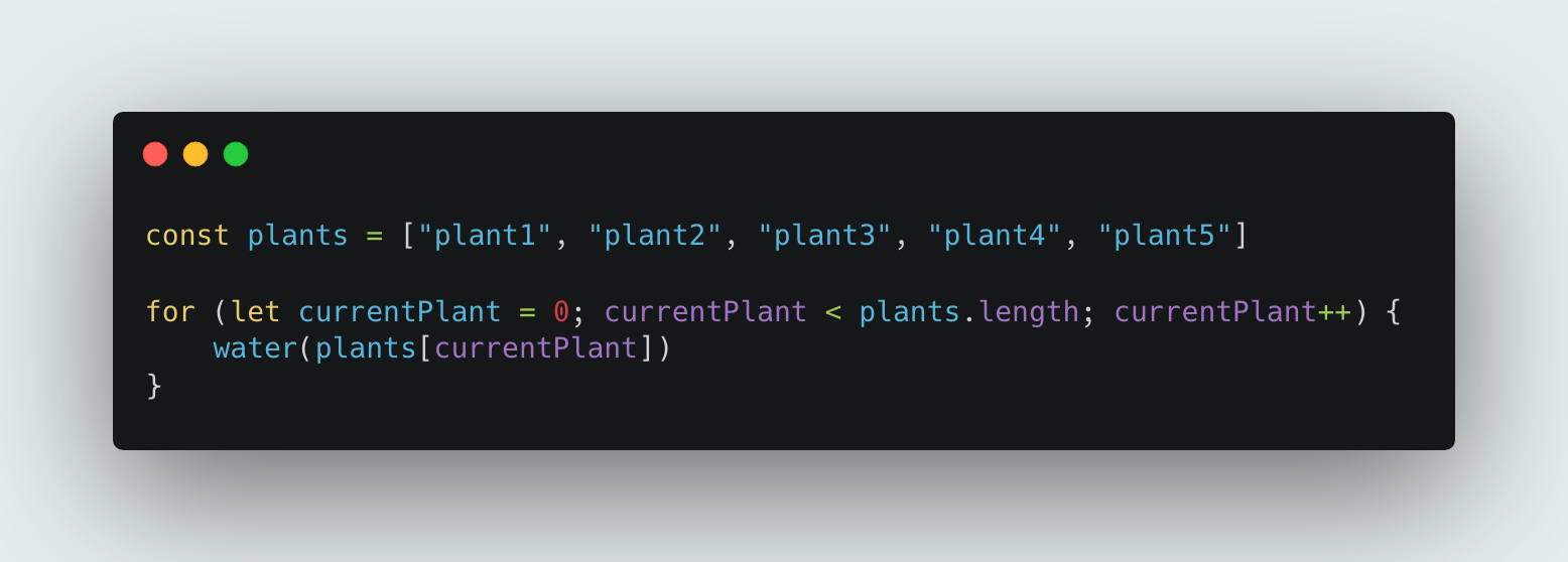 Imagine you have 5 plants to water. You need to repeat the action of watering each plant until you've watered all 5. Here's how a loop fits into this scenario: